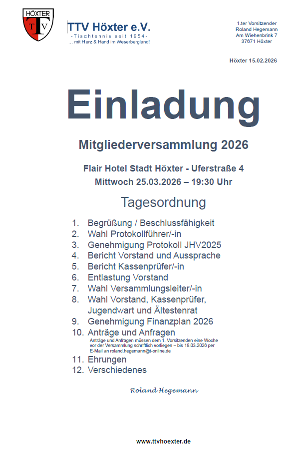 Einen erfolgreichen Jahresauftakt für den TTV Höxter gestalteten Christian Richau und Maik Engwer beim Gisbert-Janke-Gedächtnisturnier 2026 des TTC…