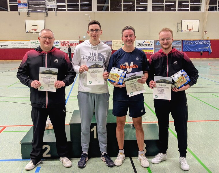 In der B-Klasse kam es zu einem vereinsinternen Finale: Felix Schäfer und Maik Engwer setzten sich hier gegen Stefan Lange und Lukas Richling durch und sicherten sich den Turniersieg.