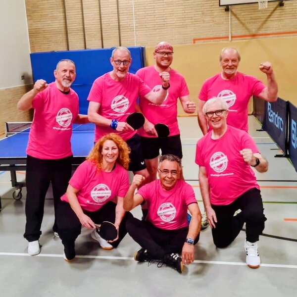 Unter dem Motto „100 % Menschenwürde – Zusammen gegen Rassismus und Rechtsextremismus“ setzten unsere dritte und fünfte Mannschaft beim letzten gemeinsamen Punktspieltag ein sichtbares Zeichen. In auffälligen pinken T-Shirts, die uns netterweise vom Kreissportbund zur Verfügung gestellt worden waren, traten beide Teams an die Tische und machten deutlich: Im Sport – und darüber hinaus – stehen wir für Respekt, Vielfalt und ein faires Miteinander.